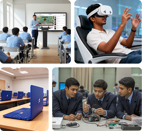 VR Labs, Robotics / STEM Labs, Digital Library, ICT Labs help students learn by doing, exploring virtual worlds, building robots and writing their first lines of code.
